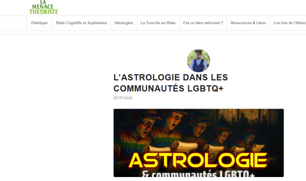 Acermendax, de son vrai nom Thomas C. Durand, est également titulaire d’un doctorat, sur un sujet nettement plus éloigné, nonobstant l’importance de la référence à la nature dans le néopaganisme, et qui est la biologie végétale. Il est vulgarisateur sur les sciences et « l’esprit critique », salarié de l’Association pour la Science et la Transmission de l’Esprit Critique (ASTEC), co-animateur de la chaîne Youtube La Tronche en Biais, et l’un des chefs de file du mouvement de la zététique. Il a publié le 9 juin 2025 l’article suivant, dont le ton se veut également factuel et « scientifique », mais dans lequel on sent au contraire une grande hostilité pour le sujet (je parle de l’engouement pour l’occultisme et pas de la population LGBTQ+ en général):
