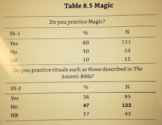 Enfin, certains souligneront, à juste titre, que beaucoup de satanistes pratiquent la magie. Tous ne le font pas, notamment dans les organisations rationalistes type Temple satanique, et une partie importante de ceux qui le font la considèrent comme un "psychodrame", une mise en scène destinée à susciter des effets psychologiques (ils s'autorisent du discours ambigu de la Bible de Satan à propos de la magie, même si plusieurs universitaires, et beaucoup de proches de LaVey, considèrent que celui-ci croyait véritablement en la magie). Mais il est vrai que les satanistes occultistes semblent demeurer une majorité: