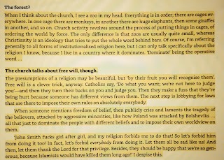 Par contre, une mère qui est clairement la victime de telles actions, qui est même la victime, pour aller plus loin, de certaines structures de péché du christianisme, parce qu'elle ale malheur de gérer son chagrin, et sa révolte contre celles-ci, de rejoindre le Temple Satanique, une organisation qui se décrit comme sataniste mais qui a un discours fondé sur la solidarité et la justice sociale auquel n'importe quelle organisation de gauche pourrait souscrire (et même un certain nombre de droite), "joue avec le feu", ne "sait pas à quelles forces elle a affaire", méconnaît l'existence du "mal", alors que c'est au contraire parce qu'elle en a fait l'expérience directe qu'elle en ait arrivé là pour commencer.