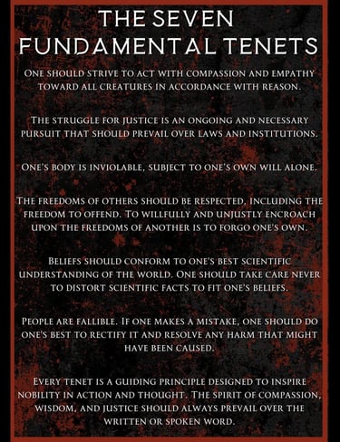 (Les "sept principes fondamentaux" du Temple Satanique, très moyennement maléfiques comme chacun peut le constater)